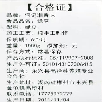 永兴高泽 绿豆1000克/包
