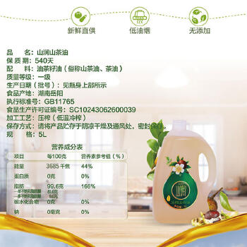 平江县山润低温冷榨山茶油PE瓶5L