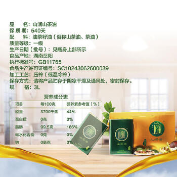 平江县山润(铁罐)低温冷榨原味山茶油3L