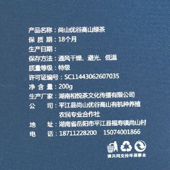 平江县尚山优茶特级绿茶200g