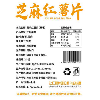 永州东安县加隽薯业芝麻红薯薄片200gX6包3种口味搭配