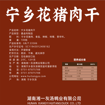 宁乡灰汤 湘一酱烤味猪肉干 100G/包 (2包)