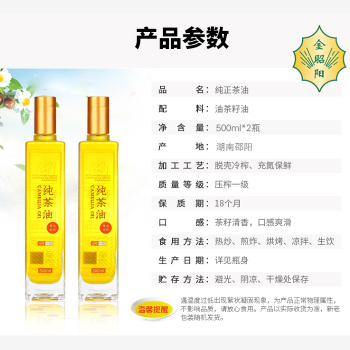 湖南邵阳金昭阳纯茶油500ml*2瓶/盒