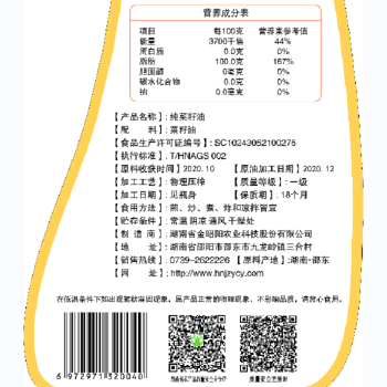 湖南邵阳金昭阳菜籽油5L/瓶