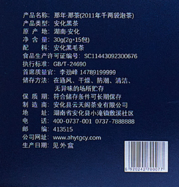 安化县 云天阁 那年那茶 千两袋泡茶2g*15包*3盒*2条/袋