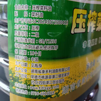 桃源县康多利压榨菜籽油4.5L/桶