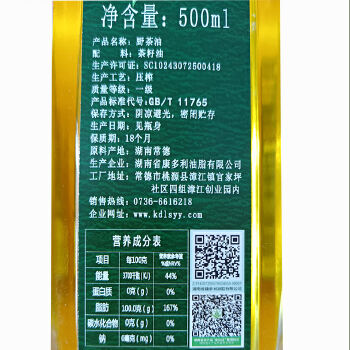 桃源县康多利野茶油500ML/瓶