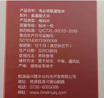 桃源县“钱缘”牌高必需氨基酸米-1KG