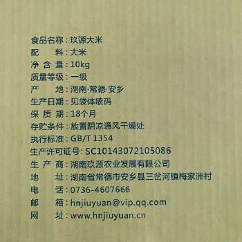 安乡县玖源有机大米10KG礼盒(2.5KG*4袋)