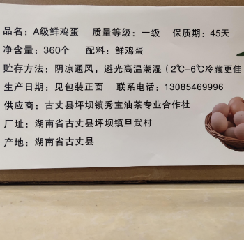 湘西阿菩山茶树散养鸡蛋360枚/件