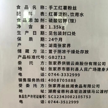 慈利县一界农户手工红薯粉丝1.35kg/盒