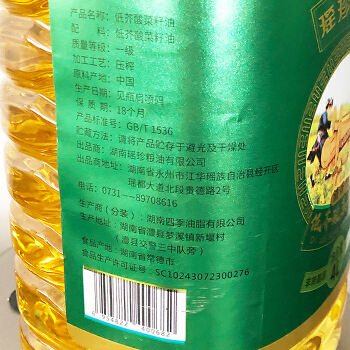 【自营】江华瑶族自治县瑶珍原产低芥酸菜籽油4L