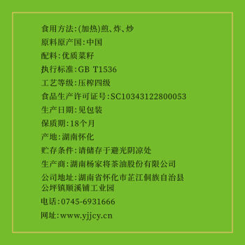芷江县杨家将乡里味纯菜籽油5L