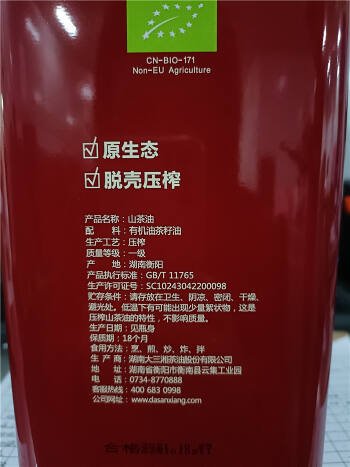 衡南县大三湘有机山茶油5L铁罐家庭装