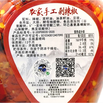 宁乡市瓦子寨龙田农家手工剁辣椒 458克一瓶