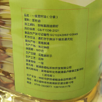 溆浦县嘴忆湘味一级菜籽油10L装