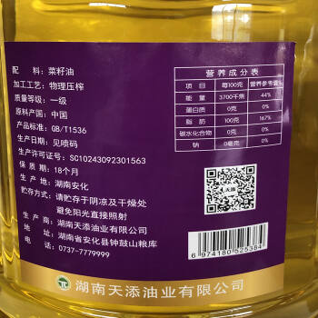安化县天添厨嫂菜籽油5L/瓶