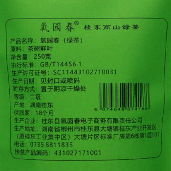 氧园春桂东县高山绿茶250克袋装