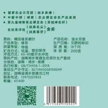 湘乡 涟水双泉绿茶200克