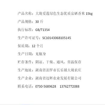汨罗市迈辉大垅爱莲绿色生态优质富硒香米15Kg