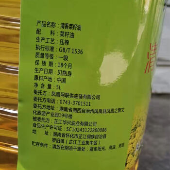 凤凰县醉美凤凰一级菜籽油5L/桶 植物油清香菜籽油