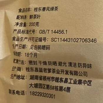桂东县蓝老爹办公绿茶1号/200g袋装