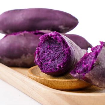 运费:不包邮,运费请与卖家联系确定配送方式及费用;紫红薯呈紫色或深紫色,表皮或带泥土,富含硒和铁、青花素等,营养丰富,适合蒸煮、点心、泡菜等多样吃法。