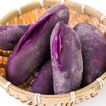 运费:不包邮,运费请与卖家联系确定配送方式及费用;紫红薯呈紫色或深紫色,表皮或带泥土,富含硒和铁、青花素等,营养丰富,适合蒸煮、点心、泡菜等多样吃法。