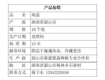 韶山市新能果蔬合作社鸡蛋30个