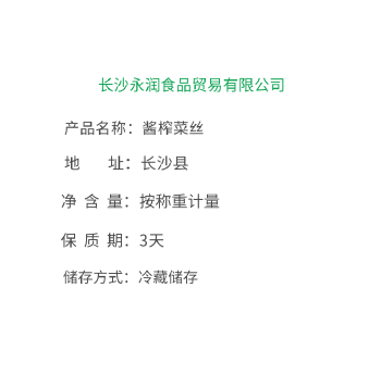 运费:不包邮,运费请与卖家联系确定配送方式及费用; 酱榨菜丝,原味,含有少量水分,清脆爽口,适合配菜、炒码等。
