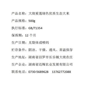 汨罗市迈辉大垅爱莲绿色优质生态大米500g