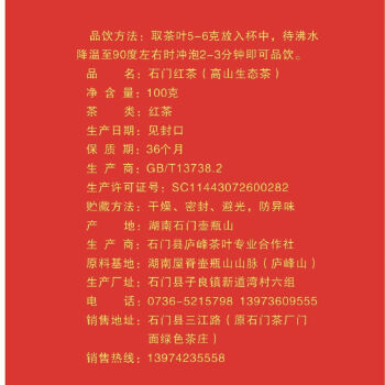 雾泉碧牌石门红茶100克罐装