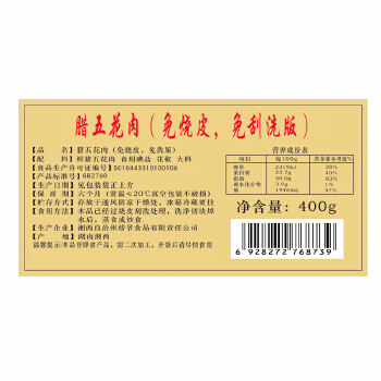 长沙1仓自营 湘西五花腊肉 400g/包