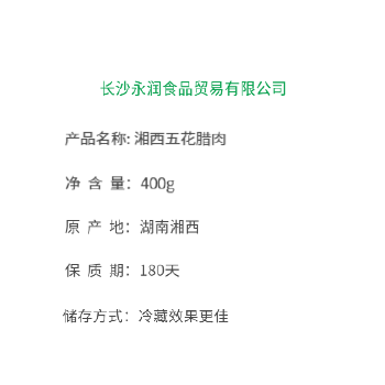 长沙1仓自营 湘西五花腊肉 400g/包