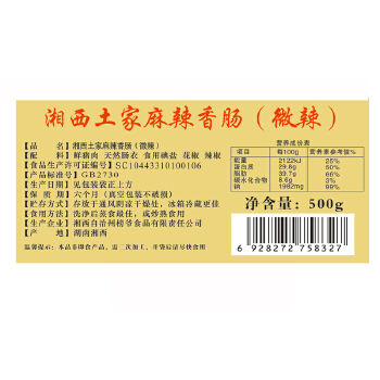 长沙1仓自营 土家麻辣香肠(微辣)500g