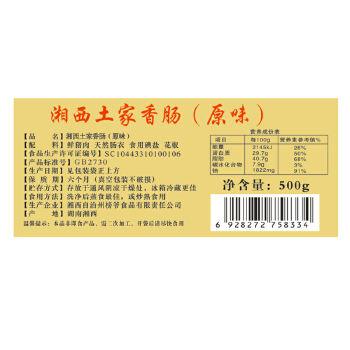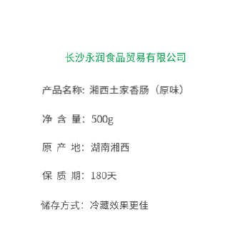 长沙1仓自营 湘西土家香肠(原味)500g