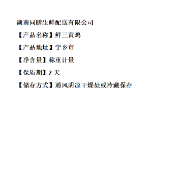 宁乡市 同膳 鲜三黄鸡500g