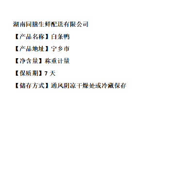 宁乡市 同膳 新鲜白条鸭500g