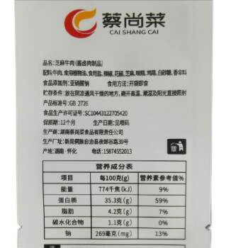 新晃侗族自治县蔡尚菜芝麻牛肉110g/袋(5袋包邮)