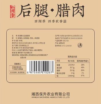 保靖县 西湘季 后腿腊肉 500g