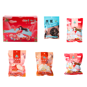 望城县麓之润干货工会福利礼盒套餐100组合(内含128g木耳+128g花菇+408g若羌灰枣+88g雪花银耳+408g桂圆干)