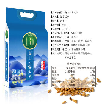 平江县山润高山云雾大米5kg/袋