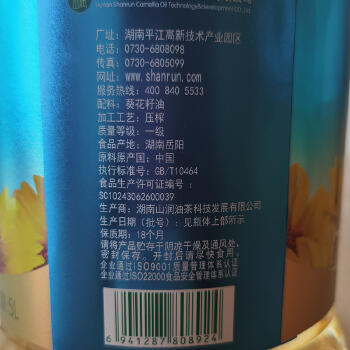 平江县山润鲜榨原味葵花仁油5L/瓶