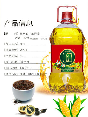 平江县山润全压榨山茶籽香食用植物调和油5L/瓶
