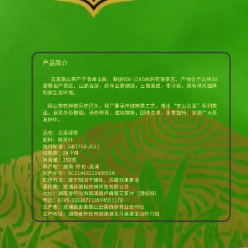云溪高山茶产于雪峰山脉、海拔600-1260米的花瑶景区。产地位于北纬30度黄金产茶区,山高谷深,终年云雾缭绕,土壤富硒,零污染,具有得天独厚的原生态环境。 瑶山茶农种茶历史已久,我厂秉承传统制茶工艺,推出“宝山云溪”系列茶品,该茶外形整细,汤色明亮,滋味鲜爽,回味生津,茶香独特,深受广大茶友好评。