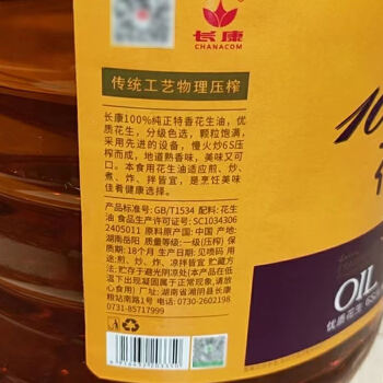 湘阴县长康100%特香压榨花生油5L