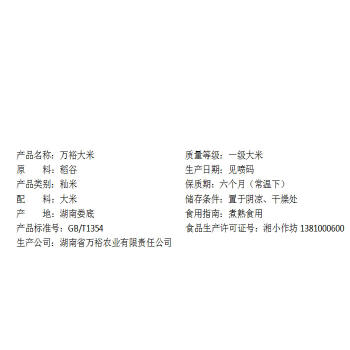 冷水江万裕大米(特优米) 25kg/包