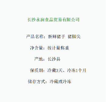 长沙1仓自营 新鲜猪手 猪脚尖 500g