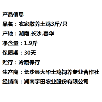 湖南长沙农家散养土鸡3斤/只