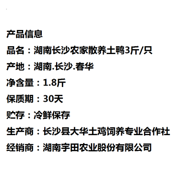 长沙县农家散养土鸭3斤/只